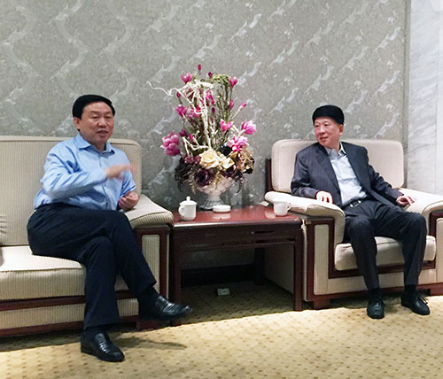 (Handan, May 23, 2016) Universal Medical CEO Guo Weiping, together with CFO Peng Jiahong and the staff of the Company, arrived in Handan, a noted city located in north China with a long history and rich cultural resources on May 23, 2016, after which, an in-depth discussion on prospects of public health in Handan was held with Mayor Wang Huiyong, Deputy Mayor Song Rentang and senior officials from municipal departments in charge of development and reform, finance, land planning as well as public health.